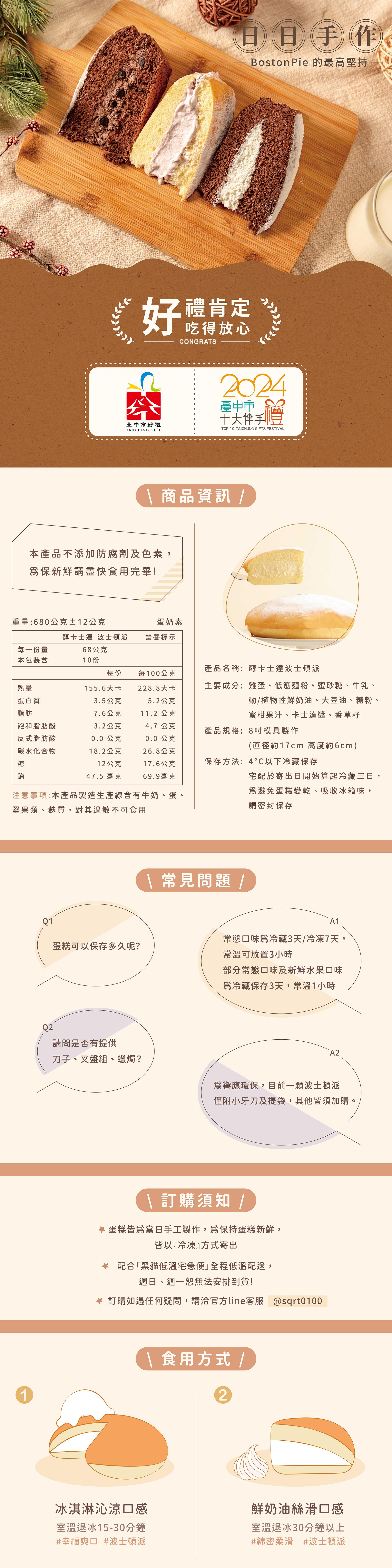 鬆軟綿密手作原味蛋糕體,搭配上蛋香濃郁的香甜卡士達醬內餡,沒有華麗的外表、不做多餘的加工,以最新鮮的食材、簡單的製作流程,製作出最純粹的美味!