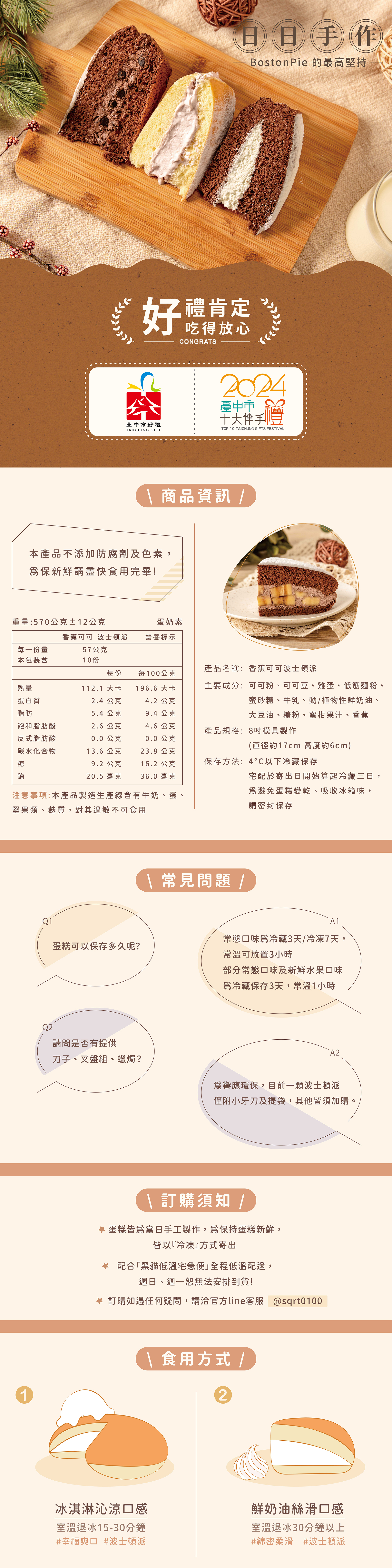 香蕉與巧克力mousse柔順中帶有些微濕潤口感,搭配蓬鬆綿密的可可蛋糕體,有種像是在品嘗香蕉布朗尼的錯覺,口感卻更無負擔!無論大人小孩都愛的滋味~