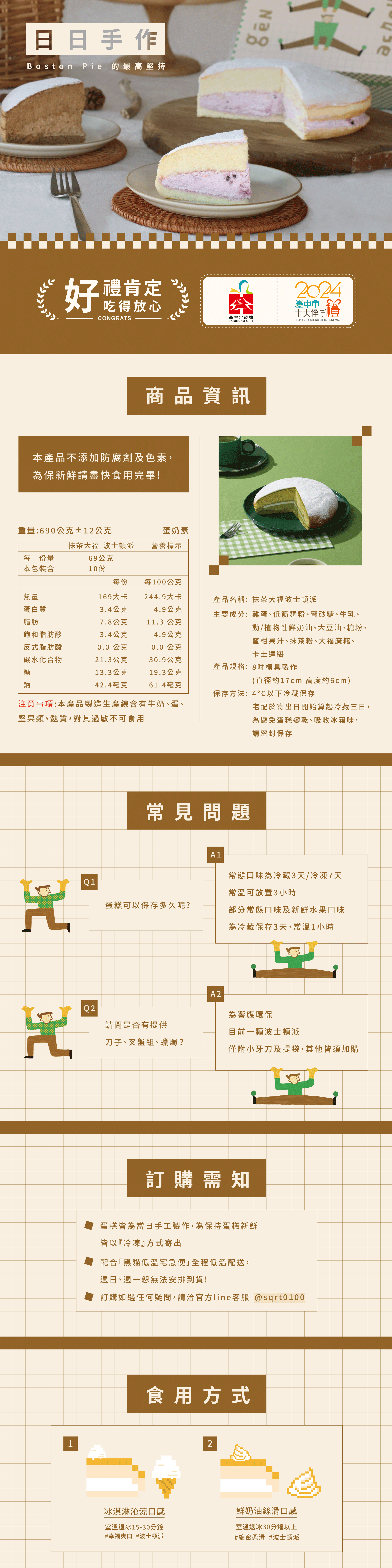 大人風味的靜岡抹茶,濃郁苦甘,搭配牽絲的大福麻糬,淡淡的糯米香氣結合爽口的茶香,以及微甜濃郁卡士達內餡,給你瞬間造訪日本的錯覺。